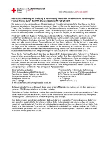 Die Verlosung veranstalten wir gemeinsam mit dem DRK-Blutspendedienst Nord-Ost. Daher gilt sie für alle DRK-Spendetermine in unserem Gebiet (Niedersachsen, Sachsen-Anhalt, Thüringen, Bremen, Mecklenburg-Vorpommern) sowie im Gebiet Nord-Ost (Berlin, Brandenburg, Hamburg, Sachsen, Schleswig-Holstein).