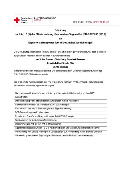 Das Institut in Springe bietet im Rahmen des „extended typing“ die Möglichkeit zahlreiche Blutgruppenantigene exakt zu bestimmen und somit Patienten mit hoher Transfusionsfrequenz und/oder seltenen Antikörperkonstellationen auch in weiteren Antigensystemen über das AB0-, Rhesus- und Kellsystem hinaus kompatibel zu versorgen. Im Institut Dessau werden überdies immungenetische Untersuchungen bis hin zu hochauflösender Sequenzierung durchgeführt. Spezielle Thrombozyten- und Granulozytendiagnostik erfolgt an den Standorten Dessau, Oldenburg und Springe.